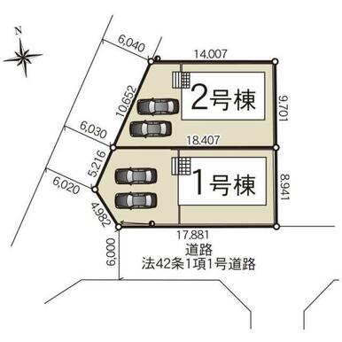号棟番号:1号棟 総戸数:2戸 工事完了予定年月:2025年12月 1号棟 真岡市台町 第8 【法令】宅地造成工事規制区域 不整形地【その他制限事項 】建蔽率:角地緩和 法第22条区域 建物面積に別途ルーフバルコニー約6.48平米有り建蔽率:角地緩和 法第22条区域 建物面積に別途ルーフバルコニー約6.48平米有り