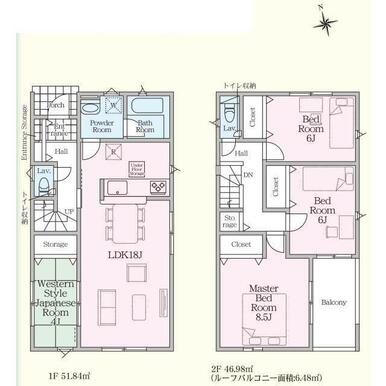 号棟番号:1号棟 角地緩和 法第22条区域 建物面積に別途ルーフバルコニー約6.48平米有り |